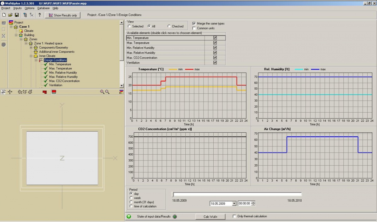 For this layer you have different possibilities to view. You can select a view of all parameters, of one selected or of those which are checked in the checkbox. On the bottom you can define the shown period and fix a specific date in the calculation time.